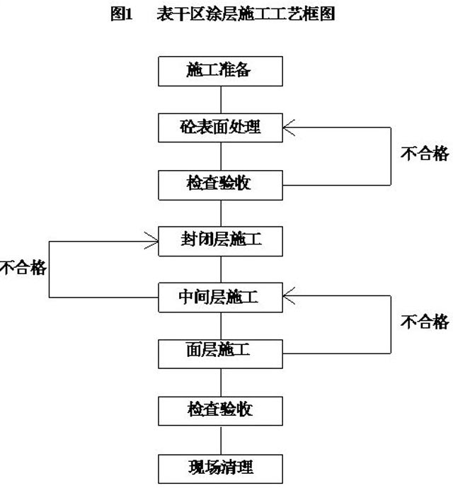 涂裝前按《JTJ275—2000混凝上防腐技術(shù)規(guī)范》的規(guī)定在表干區(qū)和表濕區(qū)各找10㎡面積的試驗區(qū),按方案中的要求處理表面,按涂層系統(tǒng)設(shè)計的配套涂料的要求進行涂裝。若涂裝試驗的結(jié)果不滿足規(guī)范要求,應(yīng)按要求另找20㎡試驗區(qū)重做涂裝試驗,如果仍不合格,則重新做涂層配套設(shè)計和試驗。