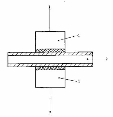將試片放在兩個表面涂有膠黏劑的試柱中間,兩個試柱應位于試片的中央且同軸心排列。將試驗組合置于定中心裝置中,在膠黏劑固化期內保持同軸心排列。如在較高濕度條件下進行特殊試驗,膠黏劑的固化時間要盡可能的短,此時適宜使用雙組份快干環(huán)氧膠黏劑。除非另有規(guī)定或商定,固化后,使用切割裝置沿試柱的周線切透至底材。