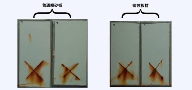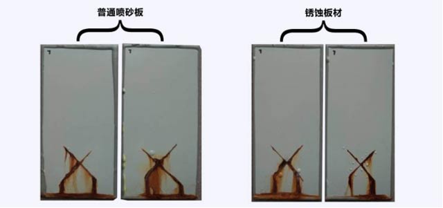 環氧帶銹防銹涂料耐鹽水測試:1032小時,對銹蝕板材的防腐保護能力與經過噴砂處理的防腐程度相同。