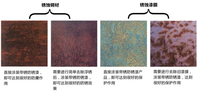 已經銹蝕的表面無需噴砂或打磨,可直接涂裝,涂料表面適應性強 對金屬表面以及潮濕的表面仍具有良好的附著力